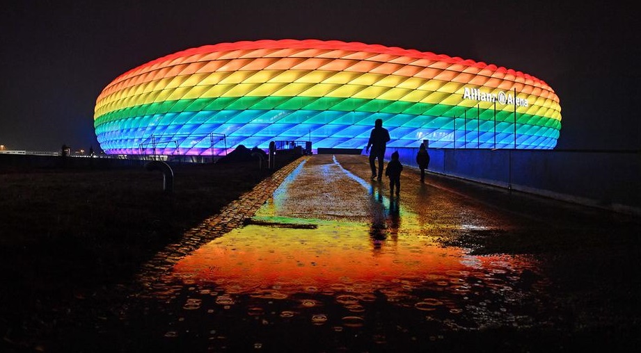 慕尼黑安联球场在本届赛事期间多次打出彩虹色灯光