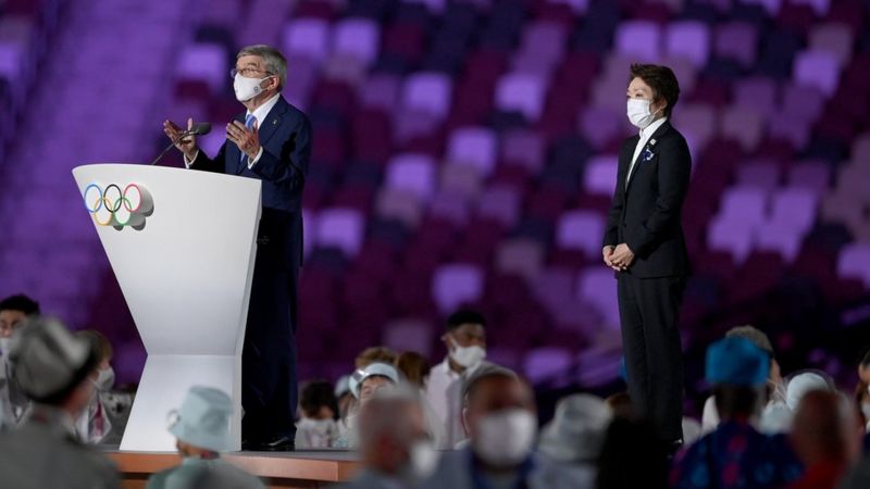 東京奧組委主席橋本聖子指,東京奧運終於能夠舉行,感謝日本人民接納舉行奧運,亦向全球私醫護致謝。巴赫亦表示,奧運開幕象徵希望,向抗疫無名英雄致敬,亦向日本民眾致謝,然後由日皇德仁宣布奧運賽事正式展開。