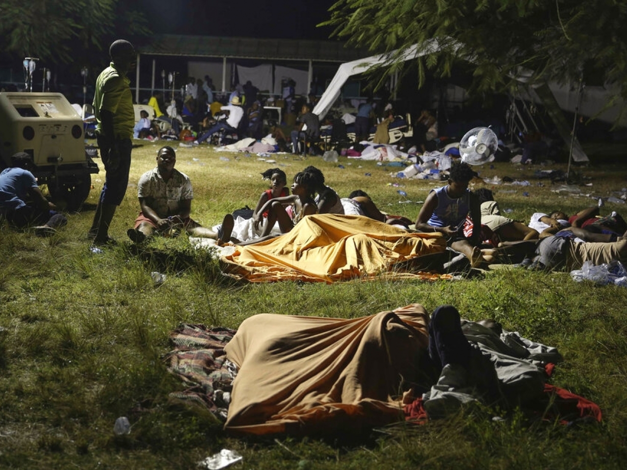 很多病人要睡在醫院外的草地。(美聯社)
