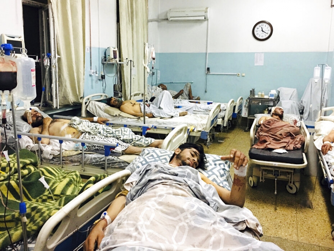 喀布爾機場連環炸彈襲擊的傷者在醫院接受治療。(美聯社)