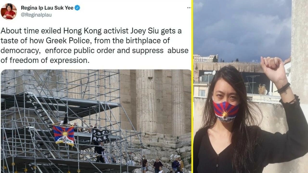 前保安局長、現新民黨主席兼行政立法兩會成員的葉劉淑儀在社交平台推特上發帖,稱「是時候讓流亡海外的香港社運人士邵嵐嘗嘗民主發源地希臘的警方如何維持治安和打壓濫用表達自由了。」