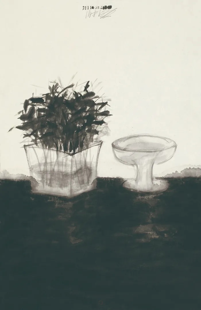 谢海用画谱研习、画室写生、山水状物完成了从书本到观照再到思考的转变。水墨是黑与白的艺术。但是,观众可在谢海的水墨作品中看到充满颜色的世界,甚至,除了日常的幸福、痛快,除了长啸山林的颂歌,也能在他的作品中读到心酸,看见眼泪。