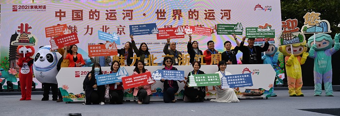 京杭對話也是面向世界的交流。在二○二一京杭對話開幕前夕,中外媒體從北京大運河畔出發,經過山東、江蘇等運河沿線地區,抵達杭州參加「京杭對話」活動,開展「千年運河千里行」中外媒體採風活動、「愛上大運河」全媒體行動,利用文圖、直播、短視訊等多種形式,充分運用新形式、新媒體、新平台,向世界講好中國大運河故事,向世界展示新時代的古運河風貌,助力將大運河打造成為展示中華文明、彰顯文化自信、塑造中國形象的亮麗名片。