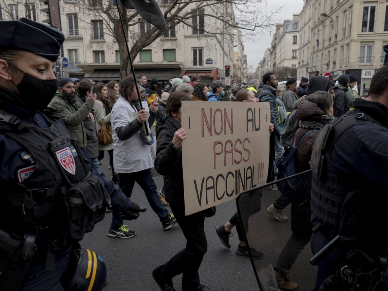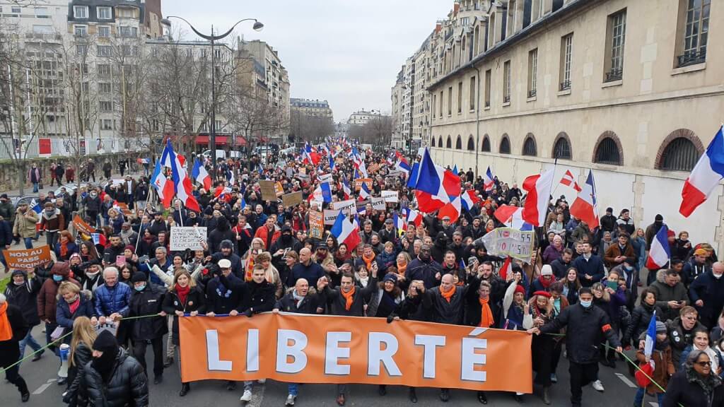 在法國首都巴黎,大約38000人參與遊行,不滿政府引入疫苗通行證,禁止拒絕接種疫苗的民眾坐國內航班、入場觀賞體育賽事、進入酒吧、戲院等場所。