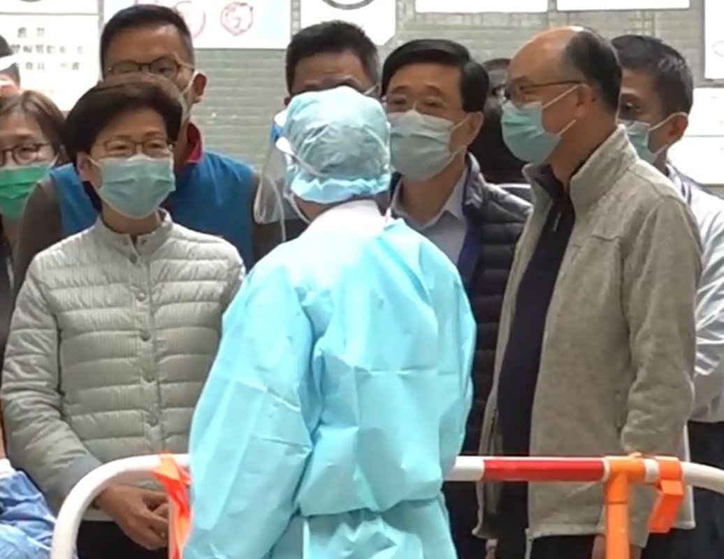 林鄭月娥等官員到逸葵樓地下及映葵樓地下的中庭視察,並聽取人員匯報工作。期間有樓上居民在單位內叫罵,表達不滿。
