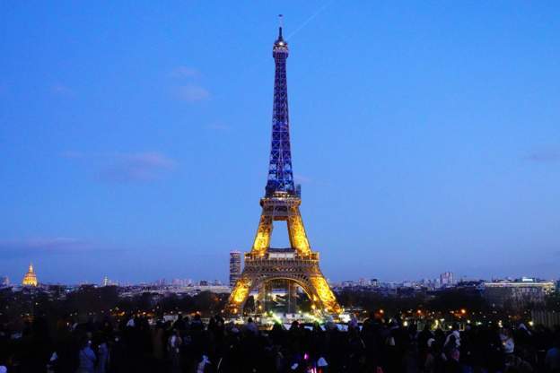 多國都以烏克蘭國旗的顏色,也就是藍色和黃色的射燈,照亮不同的著名建築,顯示對烏克蘭的支持。