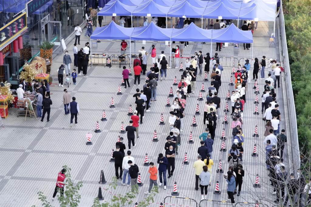 中國疫情嚴峻,深圳、東莞14日起封城7天。圖為10日深圳民眾排隊等待採檢。(中新社)