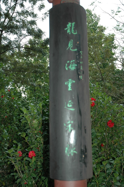 九龍寨城迭經拆建,古蹟漸湮,倖者存衙門古井、石碑柱礎而已。一九九零年五月,建築署仿清初園林風格,修築亭臺廊榭、假山奇石、花木魚池、叢林瀑布等,宛然畫境,洗滌心靈,得山水之真趣,發思古之幽情。園中迴廊繞翠,亭榭命名皆屬寨城聞人,如玉堂亭乃因寨城守將張玉堂,冼斌溪則為龍津石橋序之作者。園內路徑保留五十年代舊名,如光明路、龍城路、龍津路等,舊家雲鶴,依稀可辨。寨城公園以南北二門為主軸,其他乾門、艮門、巽門等皆循古制,兼重山水氣脈。園西玉堂亭為制高點,峰巒草樹,山石犖确,沿冼斌溪而下,溪堂信步,泛采流波,山色空濛,涼風習習。長廊盡處池臺挹翠,水面清圓,龍南榭翼守西南一角,觀荷聽鳥,尤為閒雅。園中衙門乃昔日大鵬協府,三進四廂,頗復古貌,陳列文物,備見幽深。旁為廣蔭庭、竹桐軒、六藝臺等,園中有園,時花異卉,盆景琳瑯。園東松崗有敬惜字紙亭,張玉堂舊刻銘碑尚在。北上邀山樓,獅嶺寓目。旁為童樂園、弈園、橘中秘亭,生肖雕像按堪輿術數排列,棋壇比弈,童叟相歡,各得所樂焉。園中八徑縱橫,輪椅可達,傷健同行,皆無罣礙。于今合浦珠還,詩聯增價,康文署執事諸公乃廣邀題墨,發揚文采。懷故國之旗鼓,賞歸璧之魁星,風景已殊,山河再造,故城新貌,掩映多姿,四時佳日,盍興乎來?甲申秋初黃坤堯撰。(2004年)
