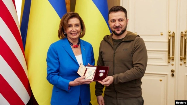 美國國會眾議院議長南希·佩洛西和其他六名民主黨議員星期六未經宣布地訪問了烏克蘭首都基輔,與澤連斯基舉行了會晤,並在星期一到波蘭與杜達會面。