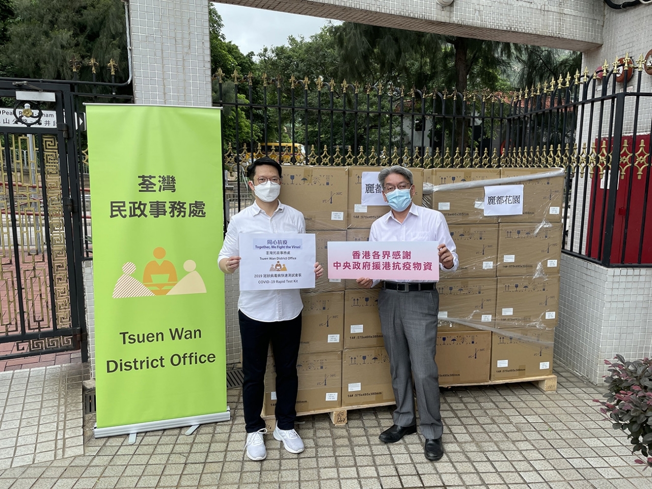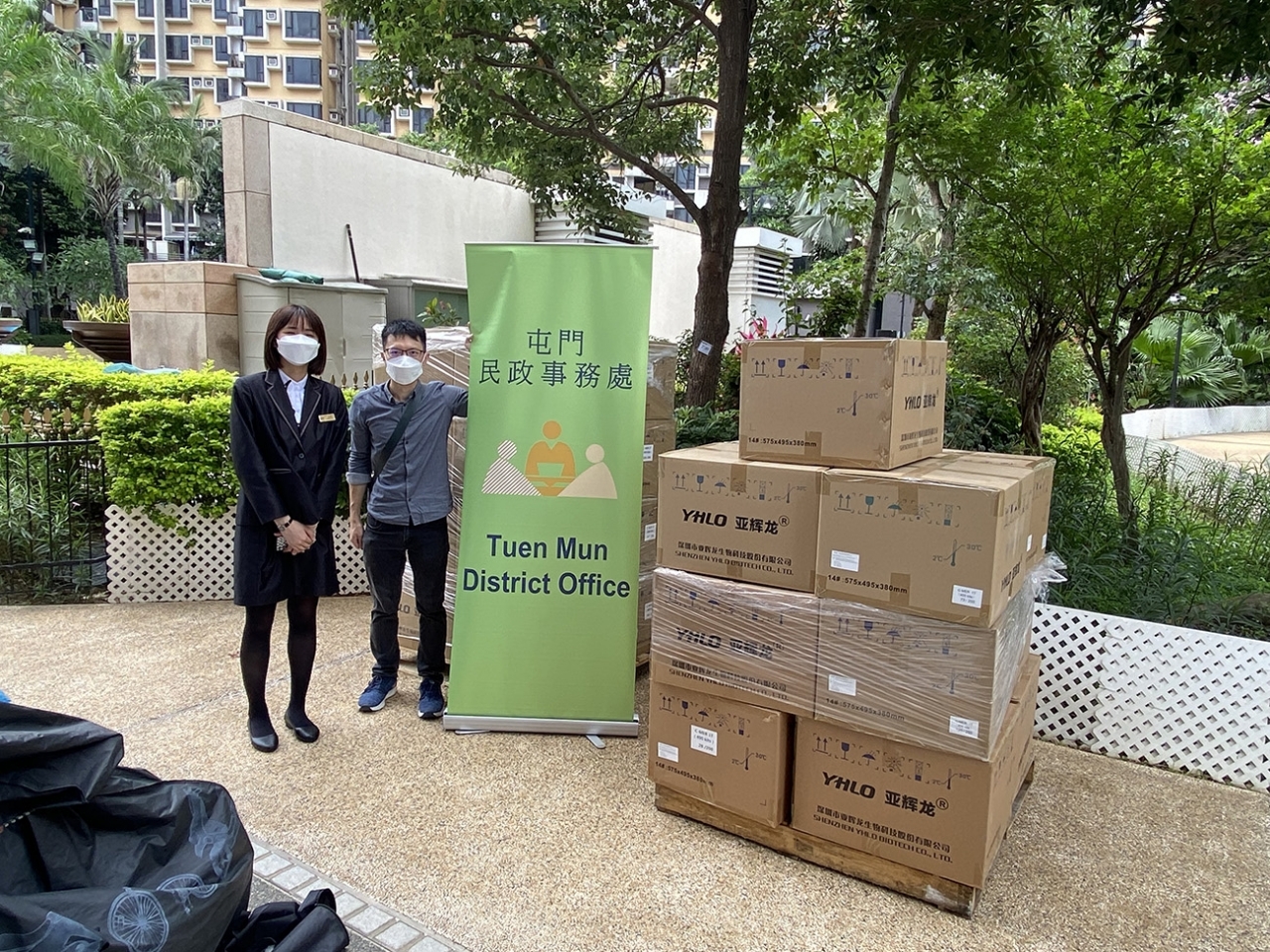 因應屯門、大埔及荃灣區採集到對新冠病毒呈陽性的污水樣本,政府派員向區內住戶、清潔及物管員工,合共派發約12萬8千套快速測試套裝。