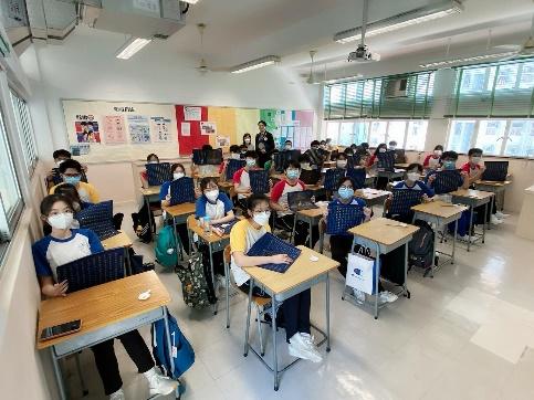 除了禮堂,各班學生在課室同步開始參與寫法。
