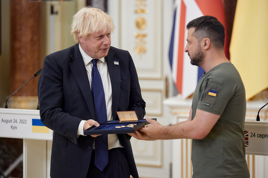 澤連斯基以個人的名義感謝約翰遜和英國在獨立日之際與烏克蘭人民站在一起。他並向約翰遜頒發了烏克蘭可授予外國公民的最高榮譽勳章“自由勳章”。澤連斯基表示:“今天,當我們在如此環境下慶祝獨立日,我有幸代表所有烏克蘭人向鮑里斯頒發‘自由勳章’。這個獎章充分反映了鮑里斯為我們國家和整個歐洲所做的和正在做的(貢獻)。”