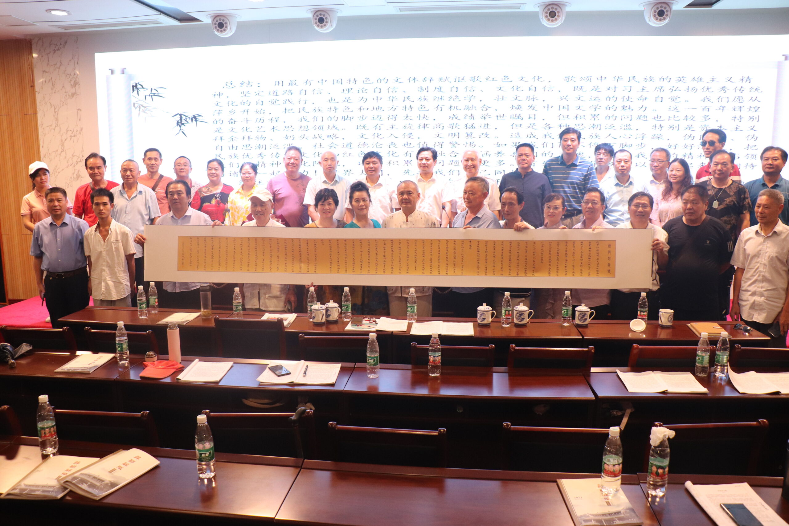 讲座结束后,由秋收起义陈列馆专业解说员黎婧、李静两位美女声情并茂朗诵了《秋收起义赋》,市辞赋学会张干元副书记现场赠送了《贵酒流芳》书法作品给贵州贵酒萍乡体验馆。最后大家在辞赋学会顾问、国家一级书画师刘才源先生书写的《秋收起义赋》长卷前合影留念。