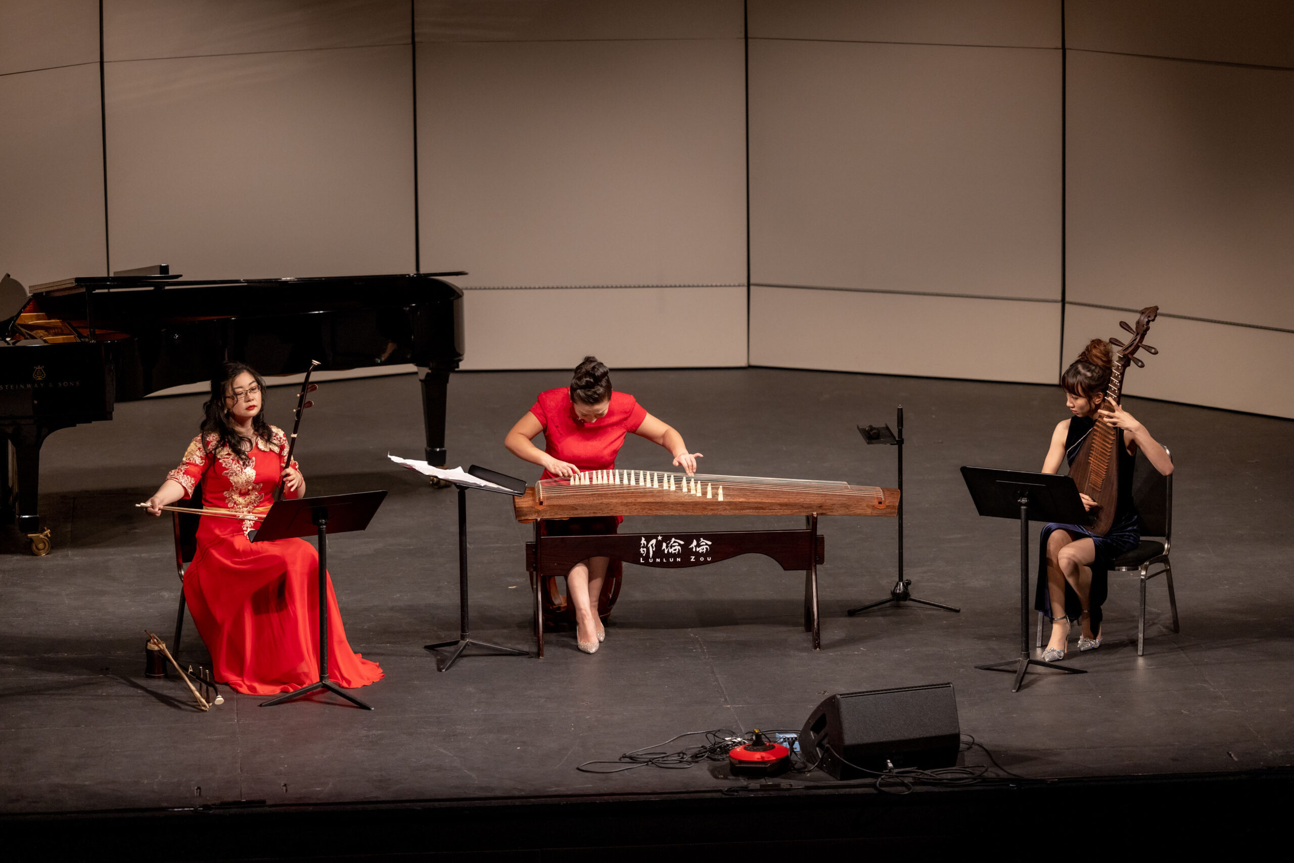 高胡演奏周翊 、琵琶演奏雷梓欣、古箏演奏鄒倫倫三重奏《平湖秋月》、《春江花月夜》。