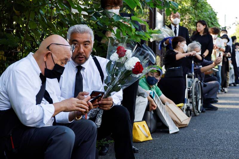 在國葬正式舉行前,設置在武道館外九段坂公園的獻花台原定今天上午10時起開放獻花,未料到場民眾太多,不得不提前半小時開放民眾獻花。