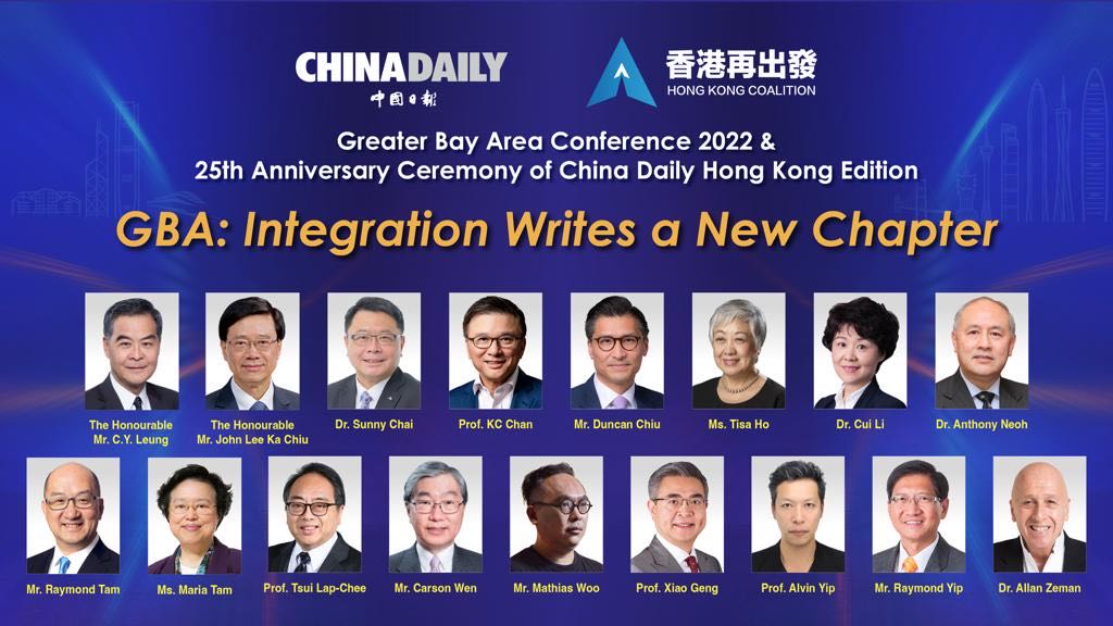 (中華新聞通訊社/中華時報香港10月6日訊)由中國日報和香港再出發大聯盟主辦的“2022大灣區論壇暨中國日報香港版創刊25周年慶祝儀式”10月6日在香港舉行。全國政協副主席梁振英、香港特別行政區行政長官李家超作為主禮嘉賓,以視頻形式發表主旨演講,中國日報社社長兼總編輯曲瑩璞和香港再出發大聯盟副秘書長譚惠珠作為主辦方代表分別以線上、線下方式致歡迎辭。