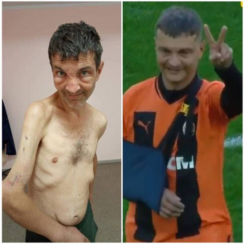 俄羅斯出兵侵略烏克蘭,先前死守馬力波(Mariupol)的烏克蘭軍人迪亞諾夫(Mykhailo Dianov)經過換俘後獲救,他瘦成皮包骨、右手臂嚴重變形,經過調養後近日現身烏克蘭足球錦標賽,並擔任開球嘉賓的影片在推特流傳。