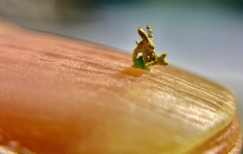 毫芒雕刻家陳逢顯為慶祝兔年,以黃金雕刻出世界最小黃金兔子,尺寸僅0.1公分,兔子悠閒的樣子,非常的生動可愛,溫柔、安逸的兔子,將帶來台灣經濟繁榮穩定,生活品味更好的一年。