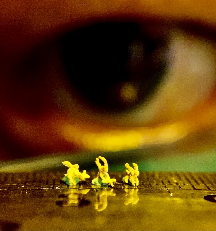 眼睛前的3隻兔子,尺寸只有1毫米,像灰塵一般的大小,感覺跑進眼睛裡面了。