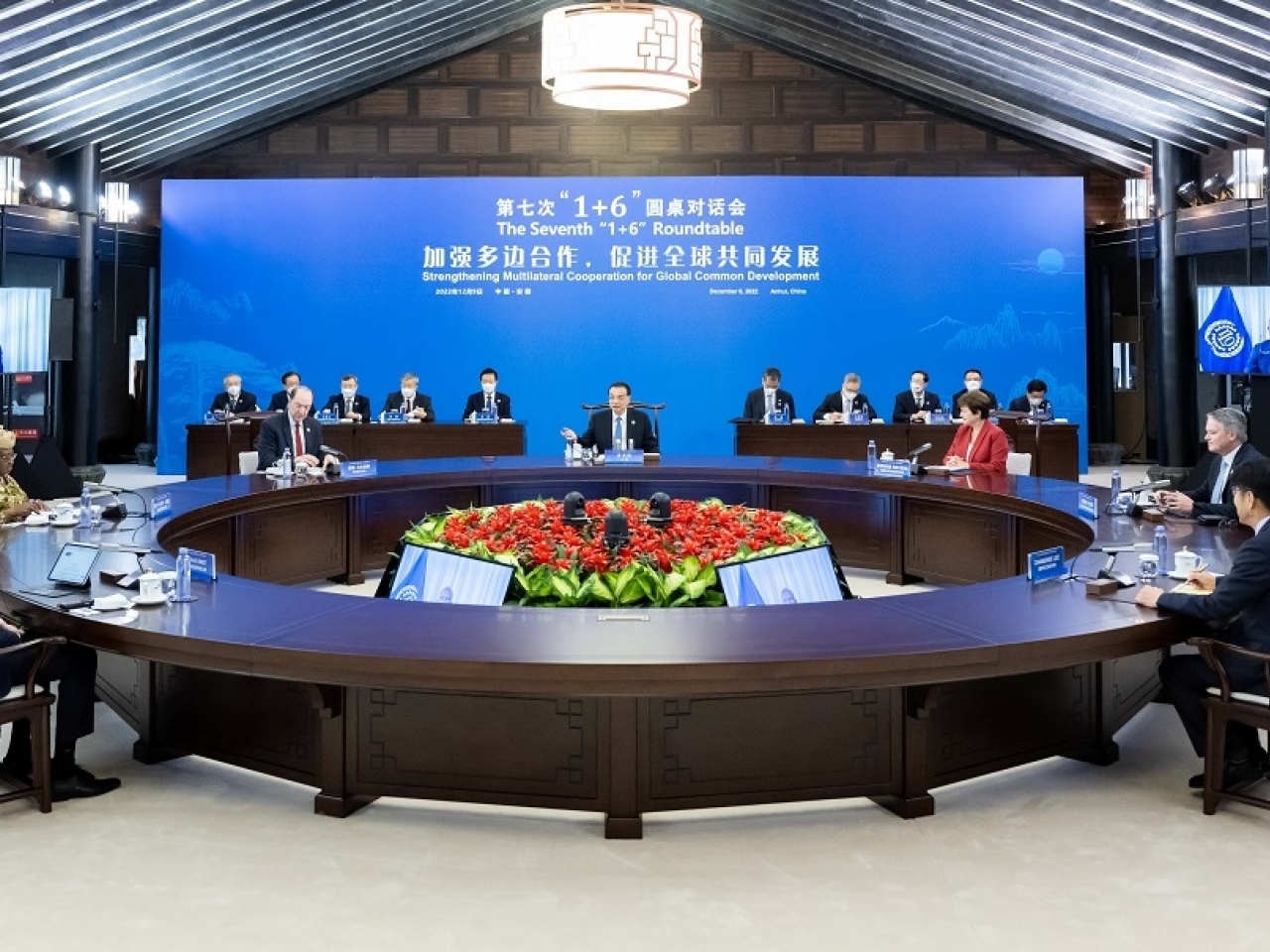 一路风情兩岸大陆编辑精选 李克強與國際金融組織高層進行對話 由 中華時報總編室 - 编发 2022年12月10日 李克強與國際金融組織高層進行對話會討論世界經濟。(新華社) (中華新聞通訊社/中華時報香港12月10日訊)國務院總理李克強在安徽黃山市同多個國際金融組織高層,進行1+6圓桌對話會,討論加強多邊合作,構建開放型世界經濟、推動復甦和增長等議題。 出席的國際金融機構高層包括世界銀行行長馬爾帕斯、國際貨幣基金組織總裁格奧爾基耶娃及世界貿易組織總干事伊維拉等。 李克強表示,當前世界經濟形勢錯綜複雜,地緣政治局勢緊張,全球通脹高企,經濟增速走低,糧食能源問題突出。中方願國際經濟機構一道,共同探討開放合作之路,推動世界經濟穩定增長。
