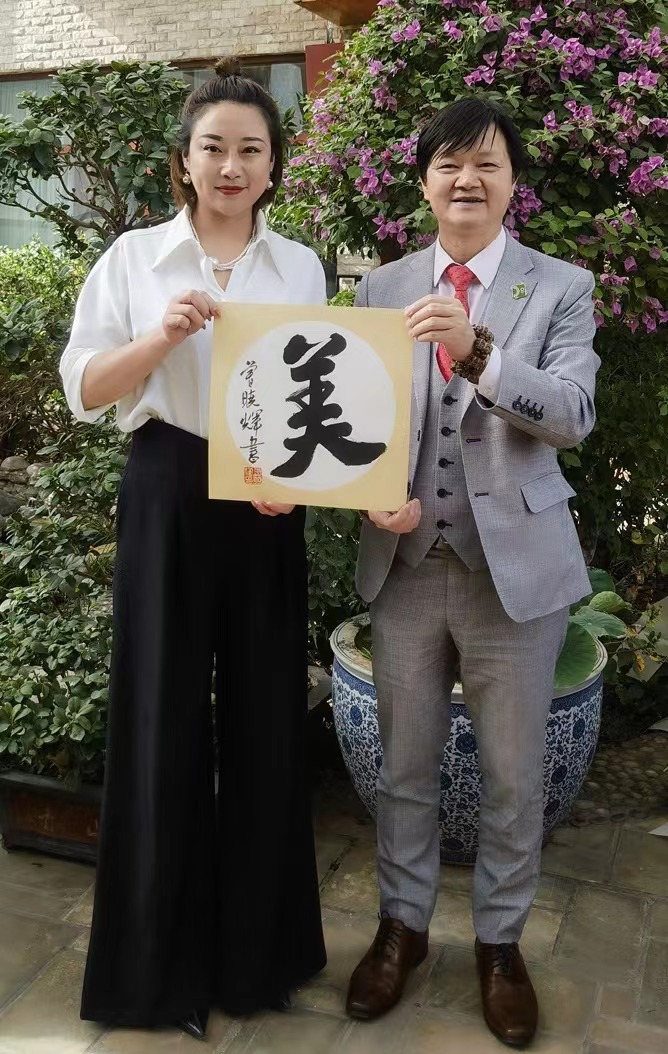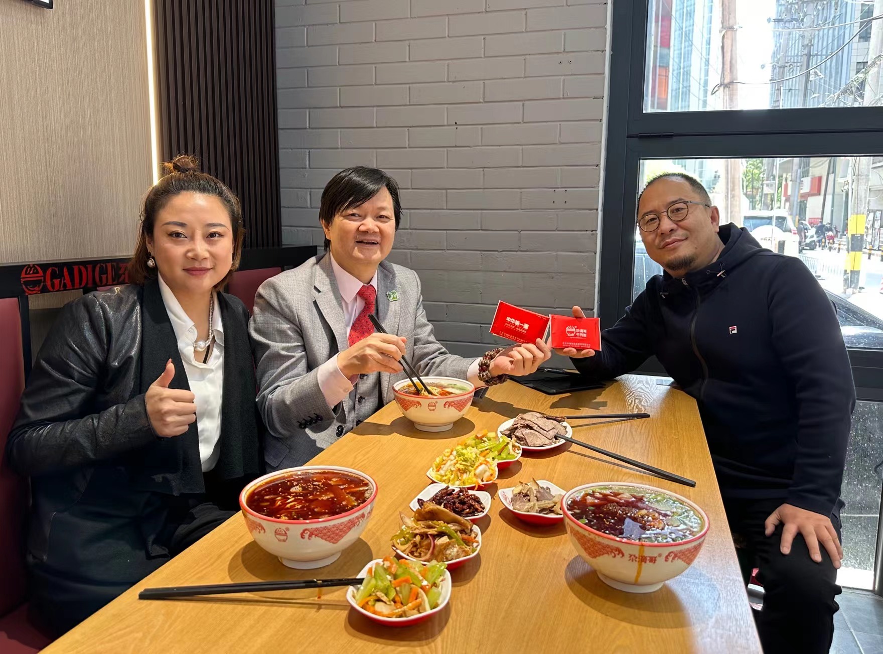 曾曉輝首先到他馬文才先生創辦的「尕滴哥新派蘭州拉麵店」品嘗新派蘭州拉麵,曾曉輝贈送親自書寫的書法給該企業惠存。