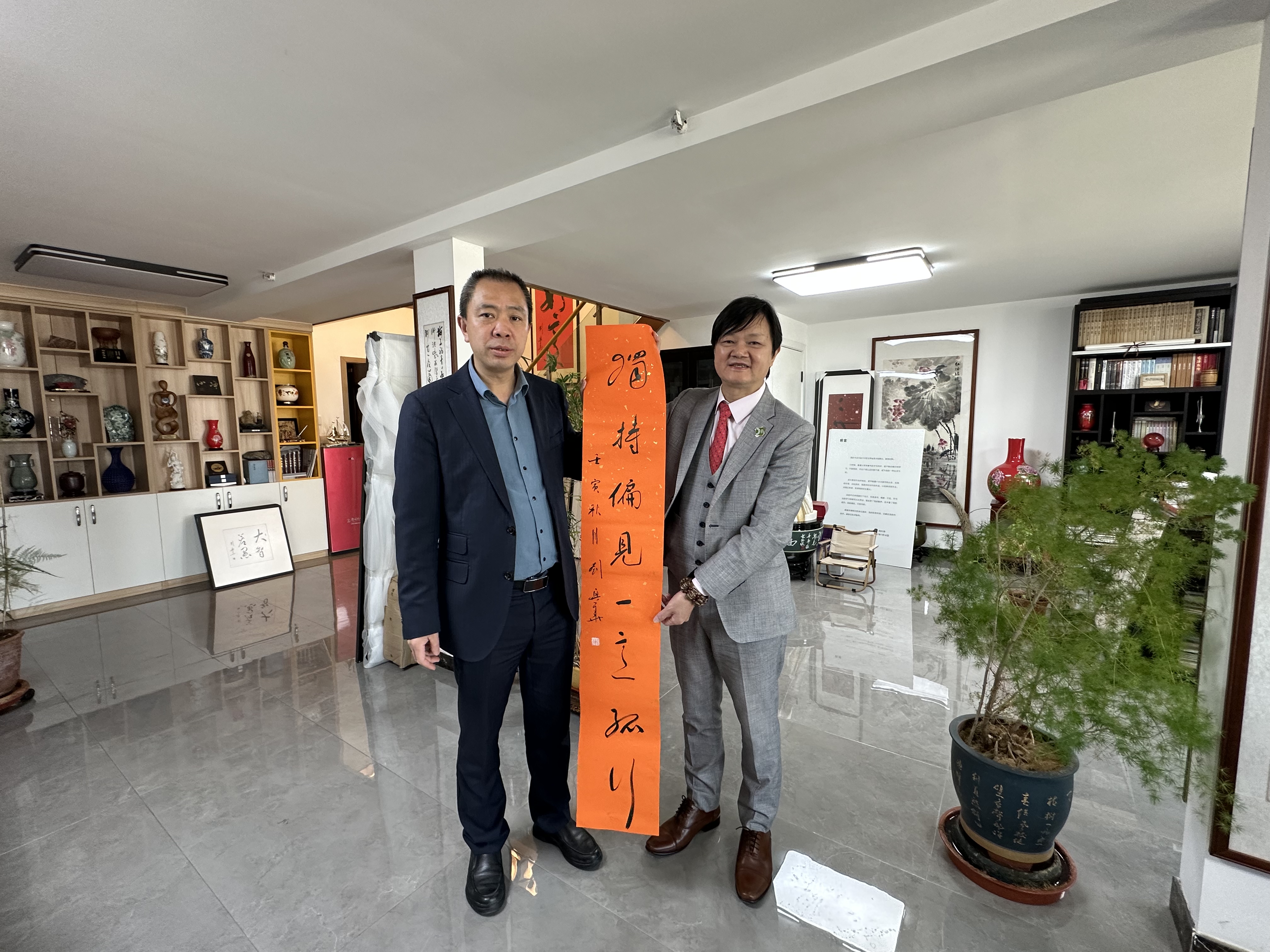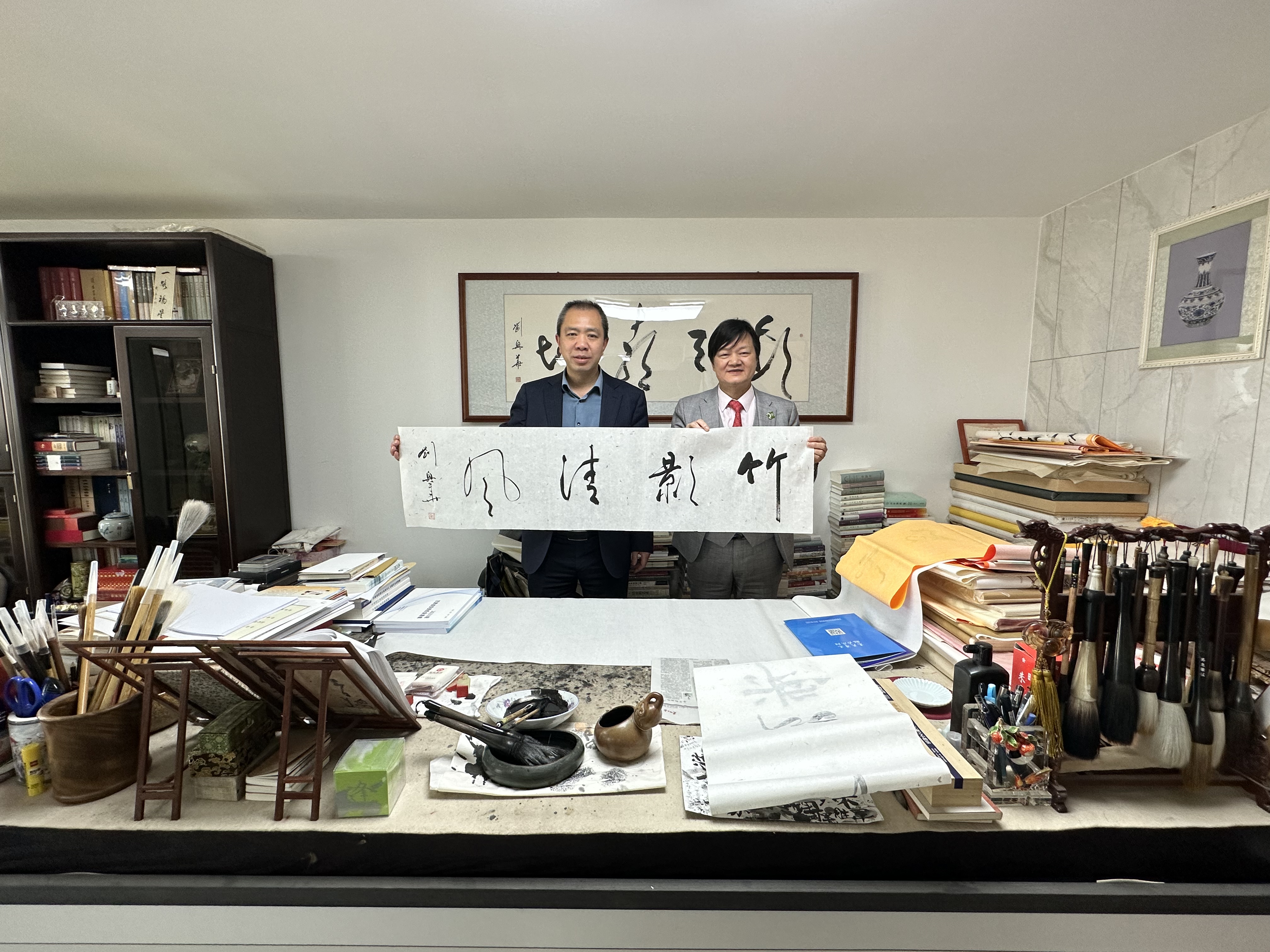 29日上午,曾曉輝應約到位於黃河邊的「書法家劉興華工作室」參訪,並與劉興華先生進行藝術交流,劉興華贈送了作品及書籍給曾曉輝惠存。