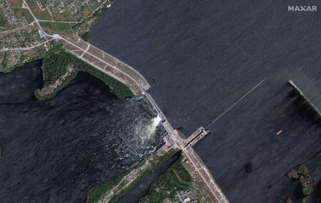 由俄羅斯推舉的卡霍夫卡市長表示,水電站大壩頂部在凌晨2時許遇到多次襲擊受損。烏克蘭一方指控是俄軍所為。赫爾松地方官員表示,現正展開疏散行動,警告水位會達到危險水平。