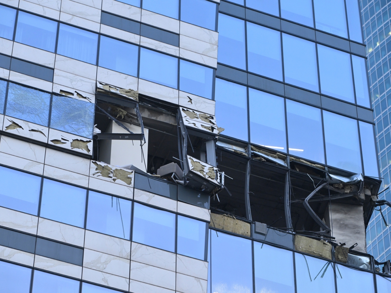 市長索比亞寧說,烏克蘭無人機在天光前發動襲擊,國際商業中心建築群內兩座辦公大廈外牆受損,當局封閉附近一條主要街道,呼籲駕駛人士改行其他路線。報道指一名人士受傷,機場一度暫停升降。