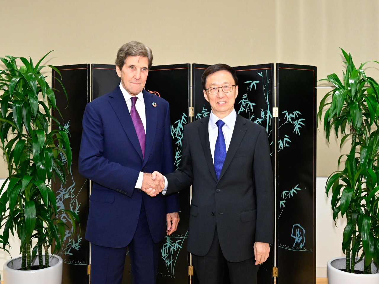 韓正表示,中國政府高度重視生態文明建設,持續推進能源綠色低碳轉型,提前完成2020年氣候行動目標,將繼續堅定不移推進實現「雙碳」承諾,全面落實《巴黎協定》目標。中美保持氣候對話和合作,對於兩國和全球都有重大積極意義。中方願與美方加強溝通,深化合作,攜手推進氣候治理,共同為人類發展作出更大貢獻。
