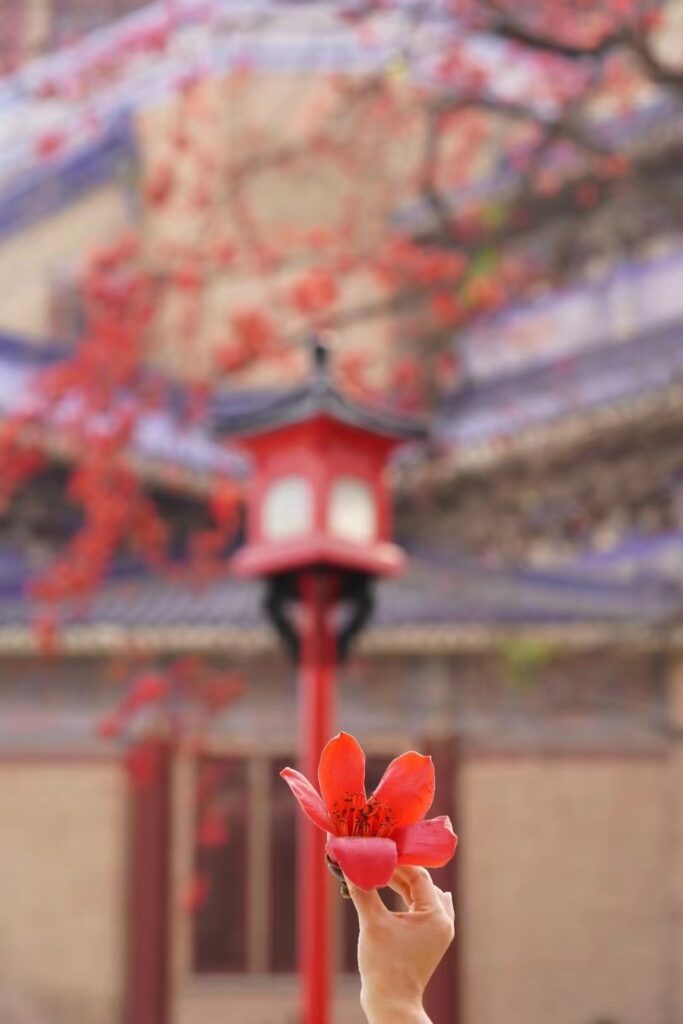 作品簡介:2023年拍於廣州中山紀念堂,當時剛好有紅棉花落地,就地取材拍了一張,紅錦是廣州市花,背景是中山紀念堂,所以命名廣州紅。