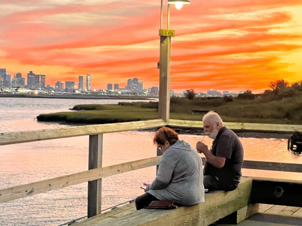 作品简介:在波士顿海滨的一刻,太阳即将落下,余晖洒满了大地,天与海都沉浸在一片金红之中。我的镜头捕捉到了一对白人老伴,他们站在这绚烂的背景前,像是时间和空间的象征,将无尽的爱与承诺凝固在了这个瞬间。而在画面的远处,繁华的高楼大厦如同一群静默的守望者,与自然和人物形成了一种复杂而微妙的对比。这些现代建筑似乎在提醒我们,即使在这个快速发展的世界中,真挚的爱情和自然的美丽仍然是不可替代的。这不仅仅是一张照片,更是一首无言的诗,歌颂了人生、爱情与自然之美的和谐共存。