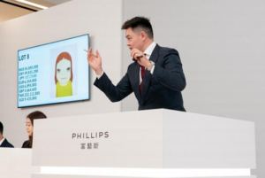 富艺斯亚洲区主席暨拍卖官陈遵文(Jonathan Crockett)拍出奈良美智《不就是不》 ,以 6,553 万港元成交