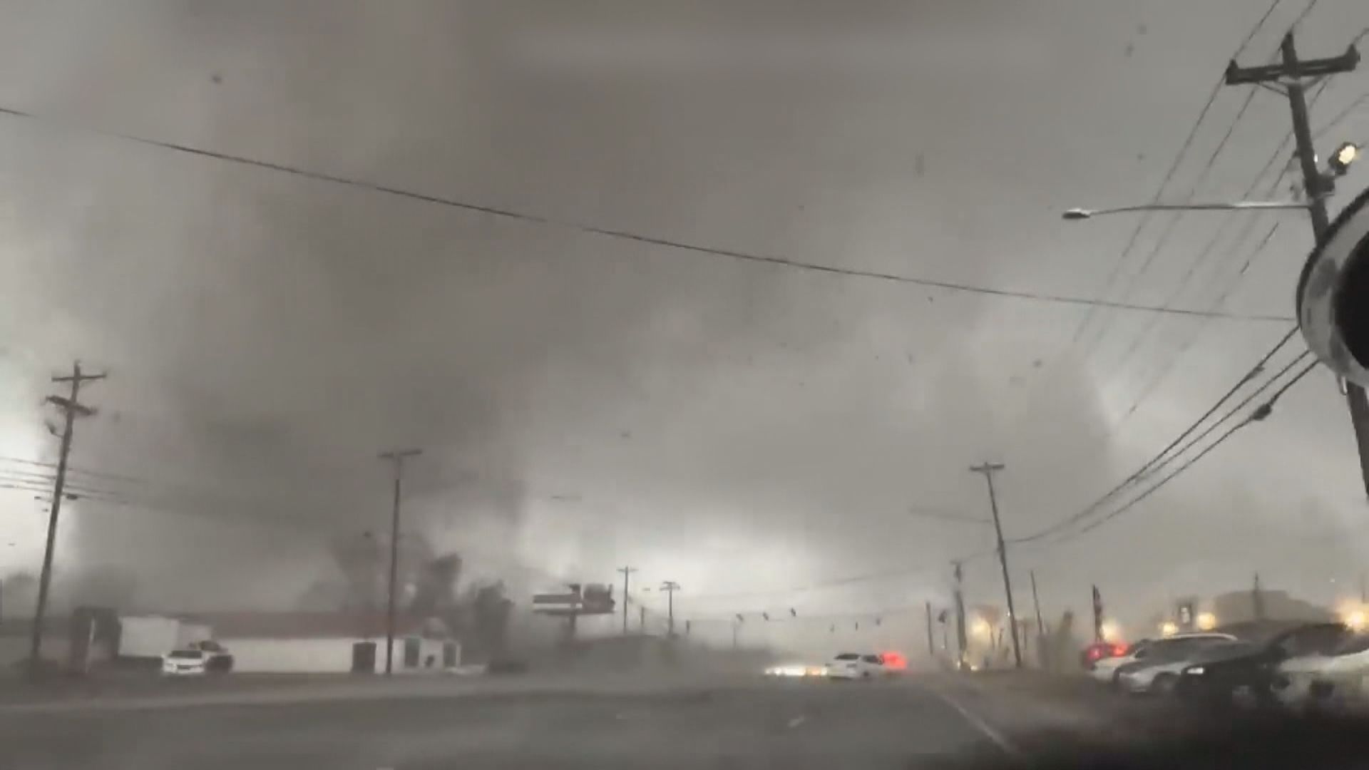 有民眾拍攝到龍捲風吹襲田納西州的一刻,現場橫風橫雨,並不時出現閃電,大量雜物被捲上半空,天空烏雲密布。