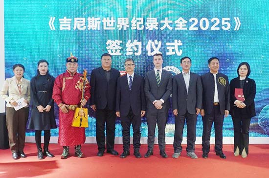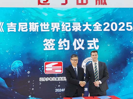 隨後,沈陽理工大學外國語學院翻譯團隊負責人遲文成教授分享了翻譯《吉尼斯世界紀錄大全》過程中的辛苦和快樂;赤峰信息職業技術學校于海洋校長介紹了學校的辦學宗旨和該校與吉尼斯世界紀錄的淵源;世界紀錄保持者楊拴明致辭並展示個人才藝,現場書寫“匠心築精品 書香潤童年”兩組組合字,並將作品贈送給遼少社;另壹位世界紀錄保持者薩仁滿都拉老師和他的團隊帶來了精彩的馬頭琴表演,琴聲時而悠揚時而歡快,讓現場聽衆仿佛置身于廣袤的大草原。才藝表演結束後,胡運江社長聘請楊拴明先生爲遼少社“中國傳統文化顧問”、聘請薩仁滿都拉老師爲遼少社“中國民族文化顧問”並頒發聘書。最後,吉尼斯公司與遼少社簽訂《吉尼斯世界紀錄大全2025》合作出版協議。