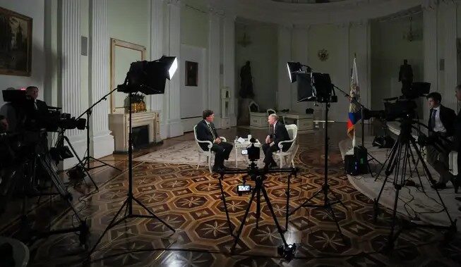 普京以俄語發表談話,但有英語配音。一開始他先對俄羅斯與烏克蘭、波蘭和其他國家的關係發表了長篇大論。這段訪談是6日於莫斯科進行的,並在tuckercarlson.com.播出。