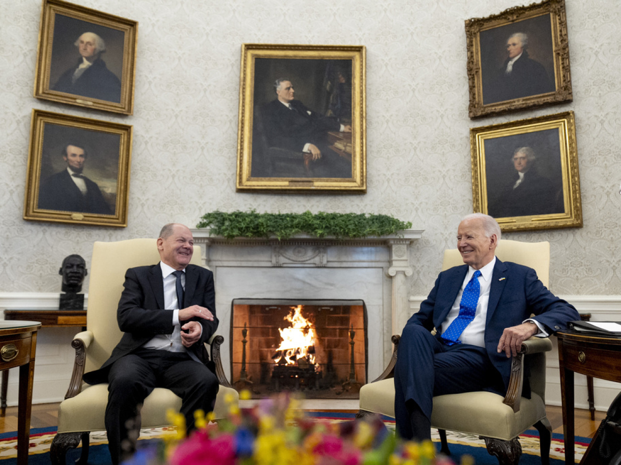 美國總統拜登在白宮橢圓形辦公室,與到訪的德國總理朔爾茨會談,兩人呼籲美國國會盡快批准對烏克蘭的軍事援助計劃,否則烏克蘭將無法阻止俄羅斯的入侵。
