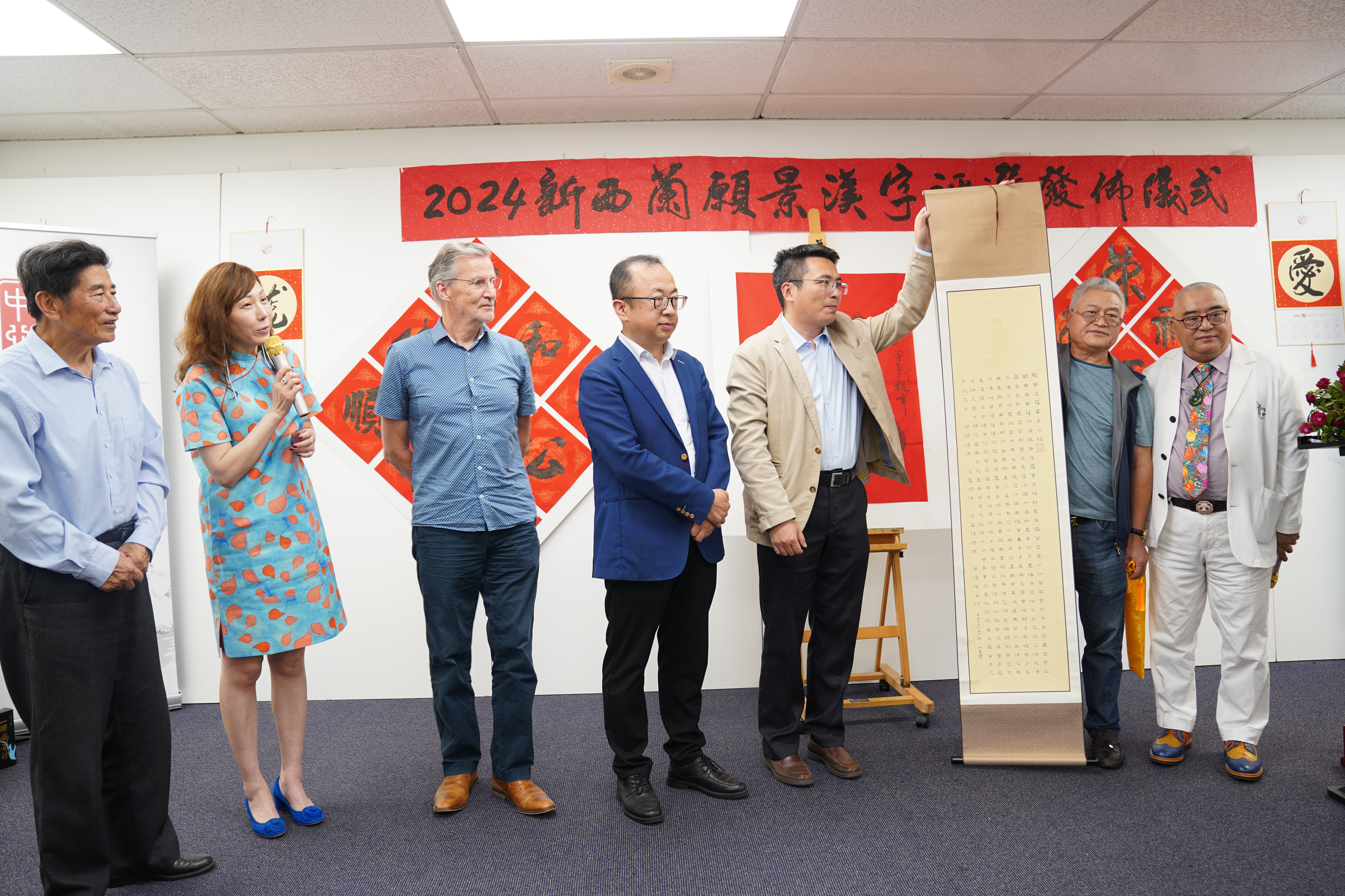 儀式由奧克蘭國際藝術空間CEO趙玲女士致歡迎詞,隨後的發言環節中,與會嘉賓對2024年新西蘭願景漢字評選活動給予了充分贊揚與肯定。與會嘉賓一致認為,願景漢字評選形式新穎、內涵豐富,便於大眾積極參與。他們紛紛表示,通過以書法藝術方式傳遞中國的漢字文化給海外華人群體,讓大家在甲辰龍年春節共同沈浸在漢字的美麗世界中,共同展示、感受文化的魅力,共同探索藝術的無限可能。