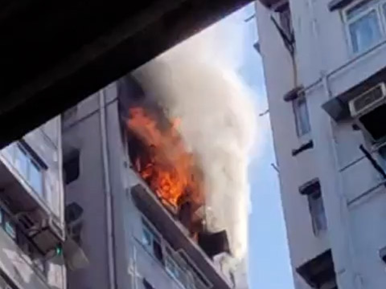 根據大廈對面商户拍攝到的片段,顯示單位冒出大量濃煙和火舌,並湧上樓上單位。有商户說一度見到有玻璃碎片跌下,消防到場架起雲梯灌救。