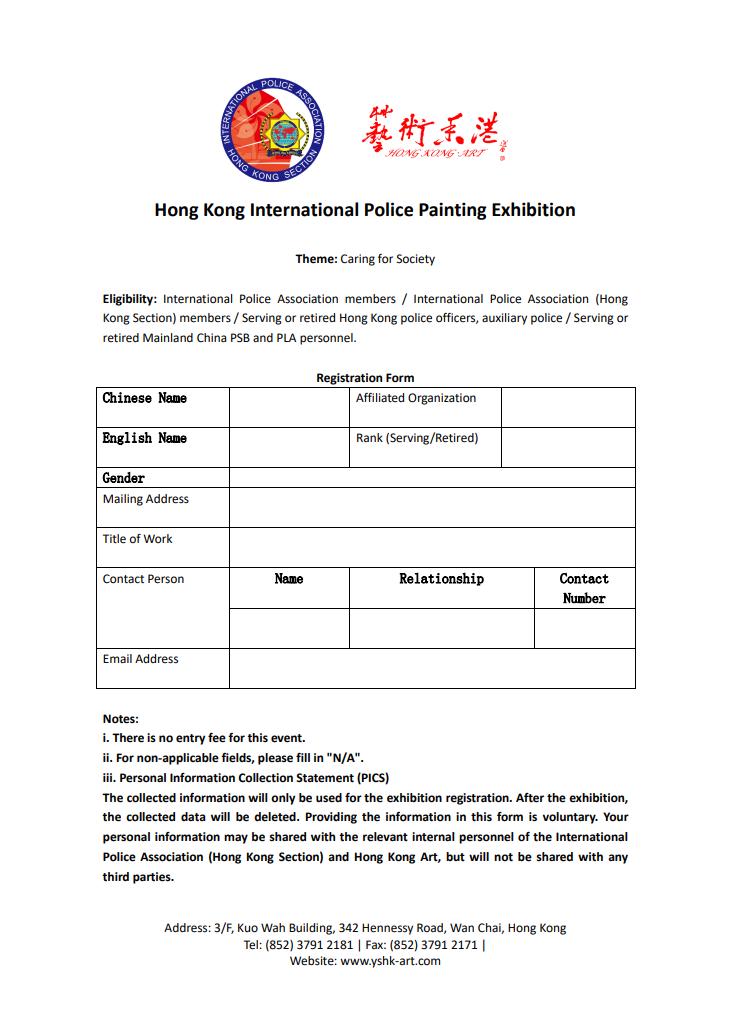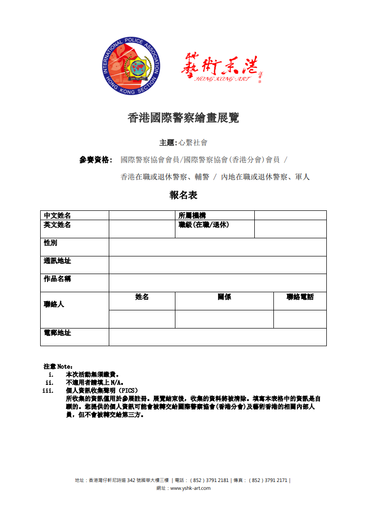 主辦機構 :國際警察協會(香港分會)、藝術香港
