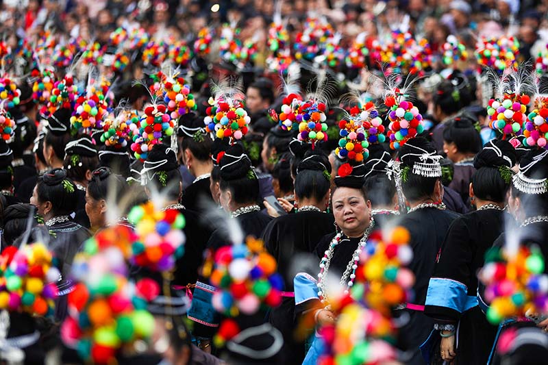 作品簡介:2024年3月18日,貴州榕江,侗族歡慶薩瑪節壹名女子在人群中蓦然回首。