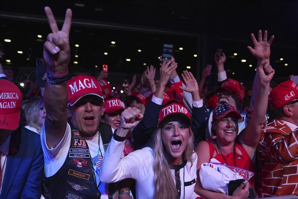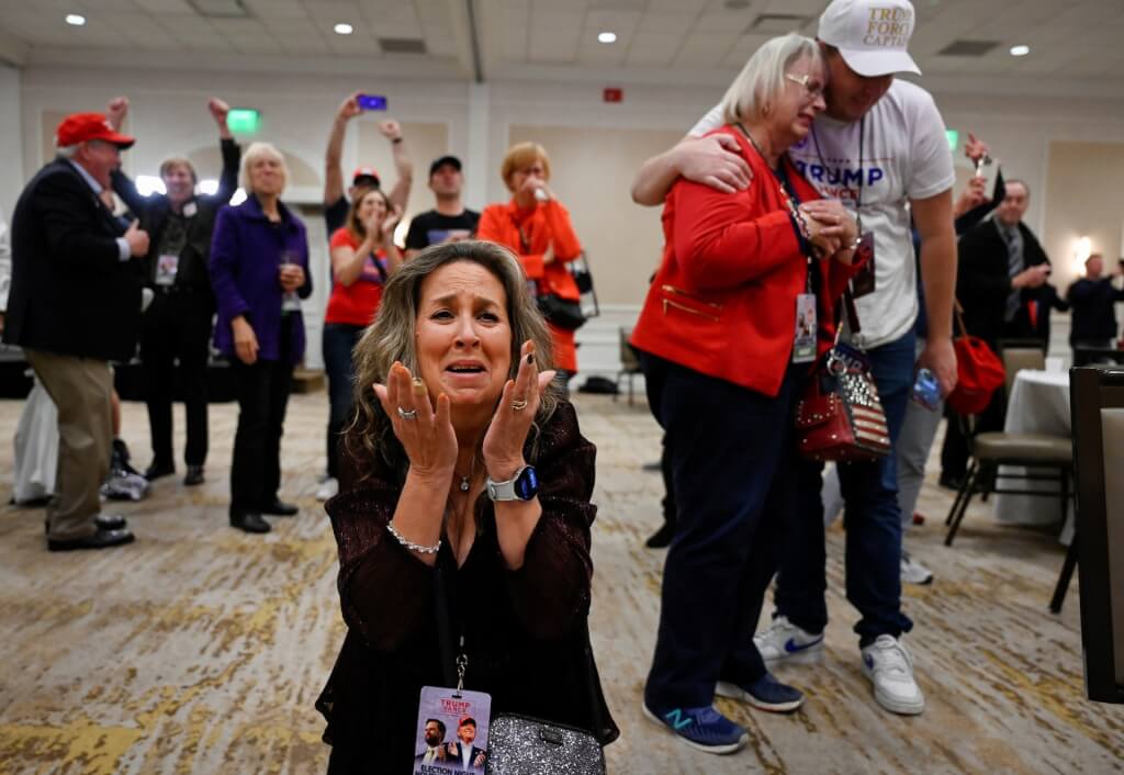 (中華新聞通訊社/中華時報11月6日綜合外電訊)美國總統大選美國時間5日投開票,共和黨候選人川普贏下多個搖擺州,晚間在佛州發表勝選談話,表示接下來將會是美國的「黃金年代」。川普陣營氣氛歡樂,支持者高舉雙手歡呼,許多人激動落淚;民主黨候選人賀錦麗陣營則氣氛低迷,賀錦麗競選團隊幹部表示,她今晚不會向支持者發表談話。