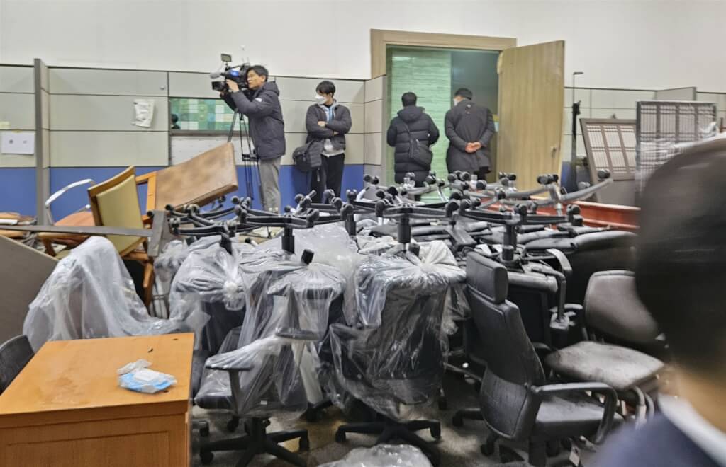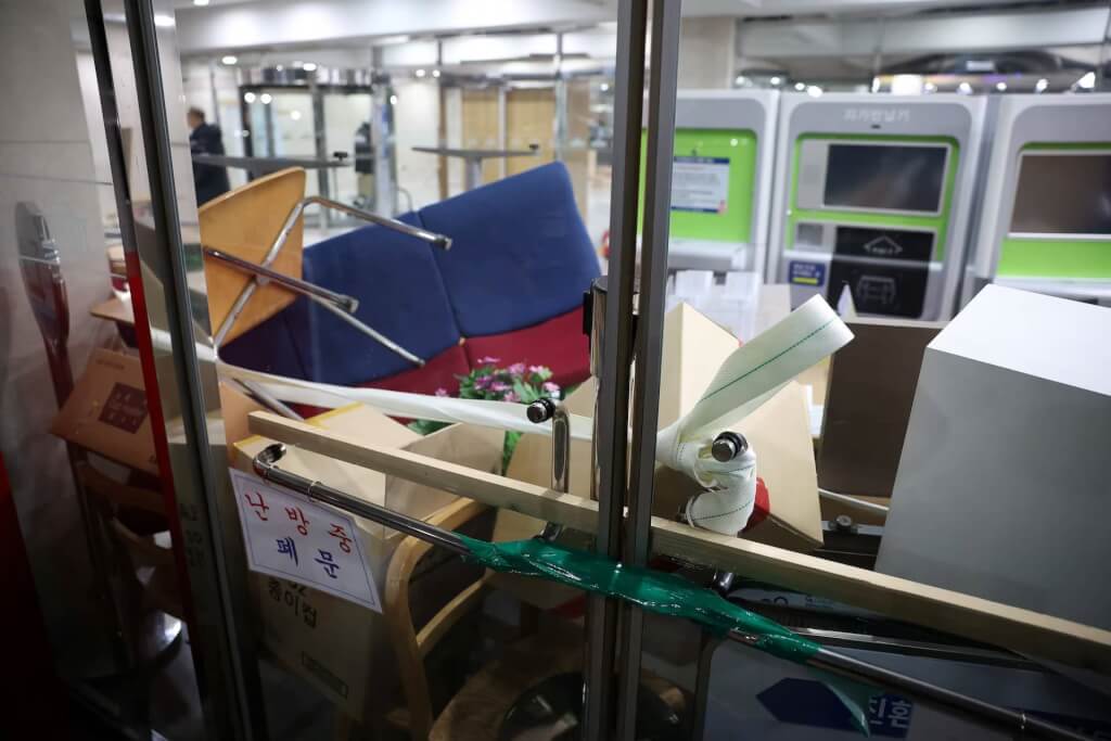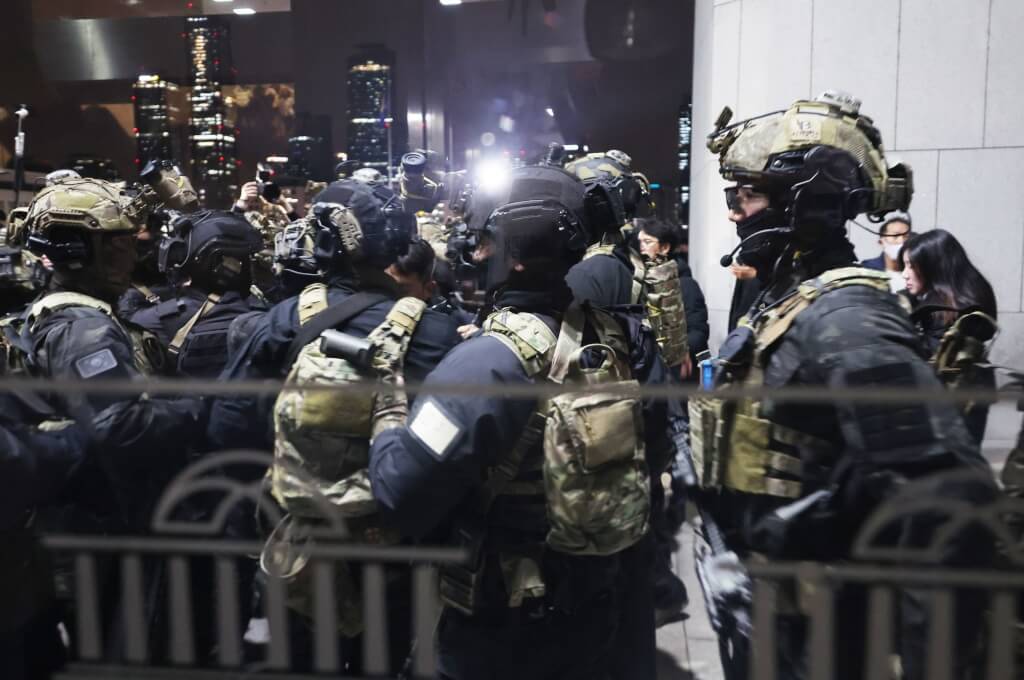 尹錫悅宣布緊急戒嚴後,戒嚴軍封鎖國會出入口,並在直升機降落在屋頂之下,短暫進入國會大廳,似藉此阻止議員進入。
