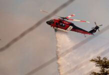 除了鄰近的7個州和美國聯邦政府,加拿大也派出人力至加州馳援,空中團隊朝山丘的火勢噴灑水和阻燃劑,地面工作人員則手持工具和水管管線試著撲滅火勢。