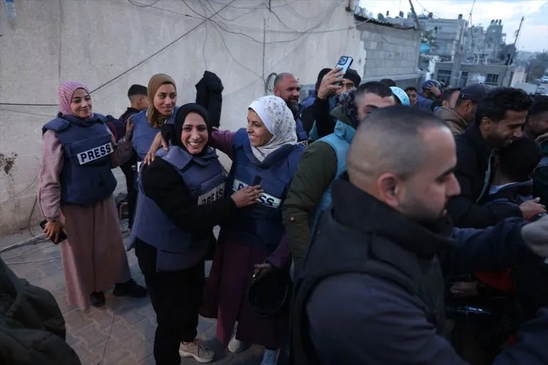 照片:隨著停火的臨近,加沙記者歡呼雀躍