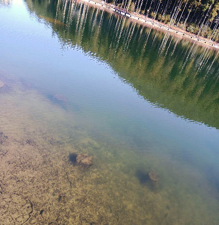 月亮湖似在山凹處,四面環山。湖面上有一座跨湖直達對岸的木質欄杆石板橋。橋看上去還蠻新的,橋上也沒幾個遊客。俯身下望,水還清冽。令我驚訝的是:近岸水淺處,尤能看得到水下一根根排列齊整的碗口粗的樹樁。看得出,它們原本是被人從底部齊刷刷鋸斷的大樹。月亮湖是人爲弄出來的?不久在路邊一拐角處,發現一塊用中英日韓四國文字介紹月亮湖的宣傳牌。文字不長,但說清了該湖的由來位置性質作用等,現抄錄如下:“月亮湖位于明月山頂明月庵處,海拔高度爲1530米。該處有一平地,四面環山,僅北面有一垭口,鑒于地形、地貌,也爲了更好地利用明月山旅遊區有限地水資源,特在該垭處修建一攔水壩,建一景觀湖——月亮湖。壩址上遊爲庫盆,爲較爲寬闊地平地,約60畝左右;下遊爲峽谷,河道較陡,再往下爲一陡崖。大壩爲漿砌石重力壩,最多壩高爲16.8米,正常蓄水區水位1525.2米”。也就是說,從眼下肉眼能看到的水中排列的樹樁來推斷,這裏原本是大樹茂密的山林,爲造湖需要,采取放水或說蓄水等方法,而成了今天月亮湖的。唉,眼前的一汪清水原來是這麽來的。弄這麽一口大湖的目的究竟是爲了什麽?從那塊宣傳牌上得到的印象,以及環顧四周的感覺,好像就是爲了蓄水,也不是弄個水利工程用來發電什麽的。這樣的價值大嗎?至于是否想制造個“高峽出平湖”的人工景觀呢?考慮到對原生態環境損害的代價,不免有那麽種“太可惜了”的遺憾。這種遺憾始終纏繞著我,一直伴隨我回到了山頂的纜車站。此時已是下午三點多了,候車室裏的遊客並不多。與我同一纜車的有位年輕的當地職校老師。他很健談,對明月山的景點如數家珍。在纜車下行到山腰一中轉站稍作停頓時,他問我上午妳們上山經過這裏下車去看瀑布群了嗎? 聽到我們沒去看,他遺憾地搖著頭。“這瀑布群真的很值得看,它是明月山代表性景點。雖說過去看只能憑腳走,也沒什麽交通工具可代步。回到中轉站起碼一兩個小時”。我想起來了,當時沒下車是怕影響到山頂的遊程。想結束了上面的遊覽下山時,順道過來看看。職校老師似看出了我們的心思,歎口氣,擺擺手說,現在來不及了,等妳們看好回來,纜車工作人員也已下班了……明月山之行,將這麽結束了。帶回下榻酒店的,不僅有滿身的疲憊,還有些許的可惜與遺憾。