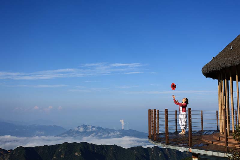 作品簡介:2024年9月我們自由行來到湖南郴州市資興回龍山雲端渡假屋,住的渡假屋就是置身雲端上的感覺,這天天氣給力讓我們壹群愛美愛拍照的美女歡喜若狂,終于找到這個機位拍下朋友開心抛帽的瞬間,自由舒展于雲端上,這個畫面妙不可言!