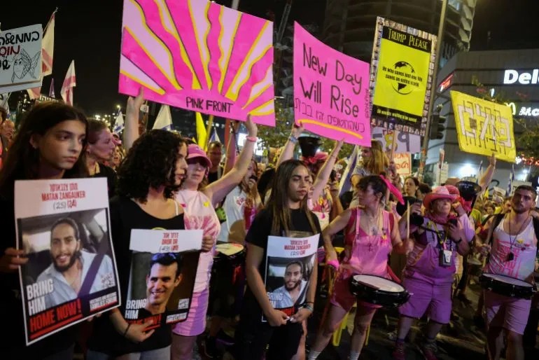照片:以色列人質的家人和支持者在特拉維夫集會