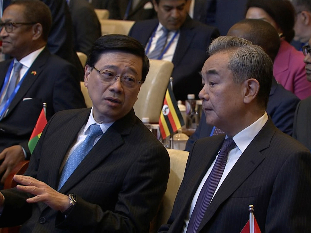儀式今早10時舉行,王毅、行政長官李家超及其他簽署國的代表進入會場。大會播放有關成立國際調解院及未來工作的宣傳片。王毅首先上台簽署《關於建立國際調解院的公約》,其餘來自亞洲、非洲等多國代表亦逐一上台簽署。