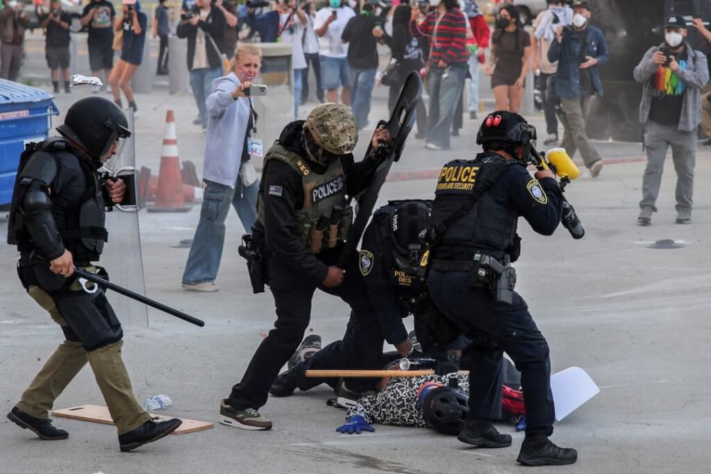 美國政府打擊無證移民之際,聯邦特勤人員連續兩天在洛杉磯地區與憤怒的抗議群眾爆發衝突,特勤人員今天向群眾發射閃光彈,並封閉部分公路。