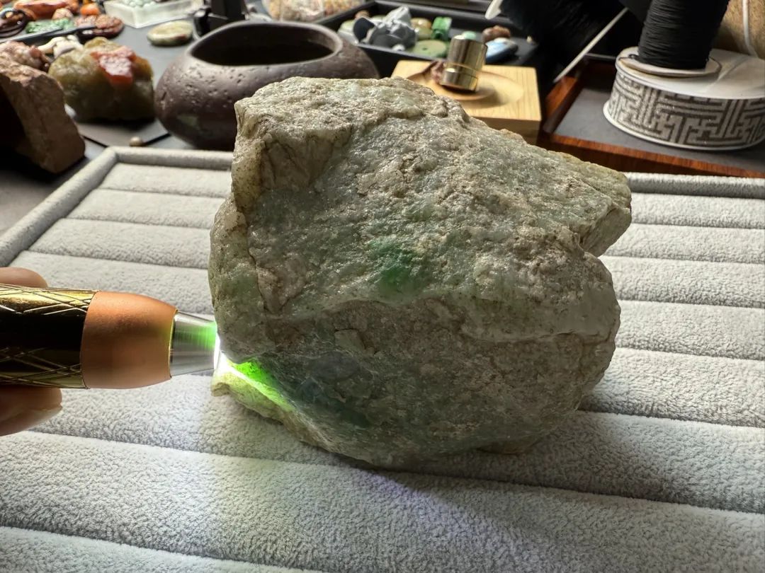 這蘊藉於掌的半琢之玉,沉靜如深潭,仿佛凝結了奔騰的歲月之河。騰沖的老料,深眠於大地幽暗的子宮億萬年,複又在百年的馬幫鈴響、滇緬商道的塵埃與汗水中輾轉流徙,跨越地理與文化的疆界,最終抵達這“玉出騰越”的命定之地。直至今日,在砣輪不倦的低吟淺唱裏,它才漸次吐納靈魂深處那驚心動魄的翠色光芒。每一次落砣,每一道磨痕,都是光陰與匠魂的疊唱,是自然偉力與人文精粹的深情對話,更是那條蜿蜒於中緬山水之間、流淌著財富、勇氣與夢想的翡翠之河,在血脈深處的潮汐湧動。人生逆旅,行至半程,豈非亦如一塊來自時空深淵的璞玉?棱角被世途的風霜雨雪悄然撫平,光華在寂寥的隱忍與等待中默默蘊積。命運如同一雙無形卻精准的手,執掌著名為“經歷”的砣輪,以悲歡為冷卻的清泉,以歲月為精研的細砂,將我們的心魂反復琢磨、砥礪。羅先生從方寸榫卯的傢俱天地,轉身投入浩瀚翠海的波瀾壯闊;我在維多利亞港灣的都市律動與極邊之城騰沖的地熱氤氳間穿梭往復,這軌跡,豈非正如手中這塊誕生於緬北莽林、在騰越匠心下煥發第二生命的玉石?被無形的刻刀雕鑿,向著更通透、更堅韌的澄明之境跋涉。人生之工,行行重行行,未終,亦未竟。